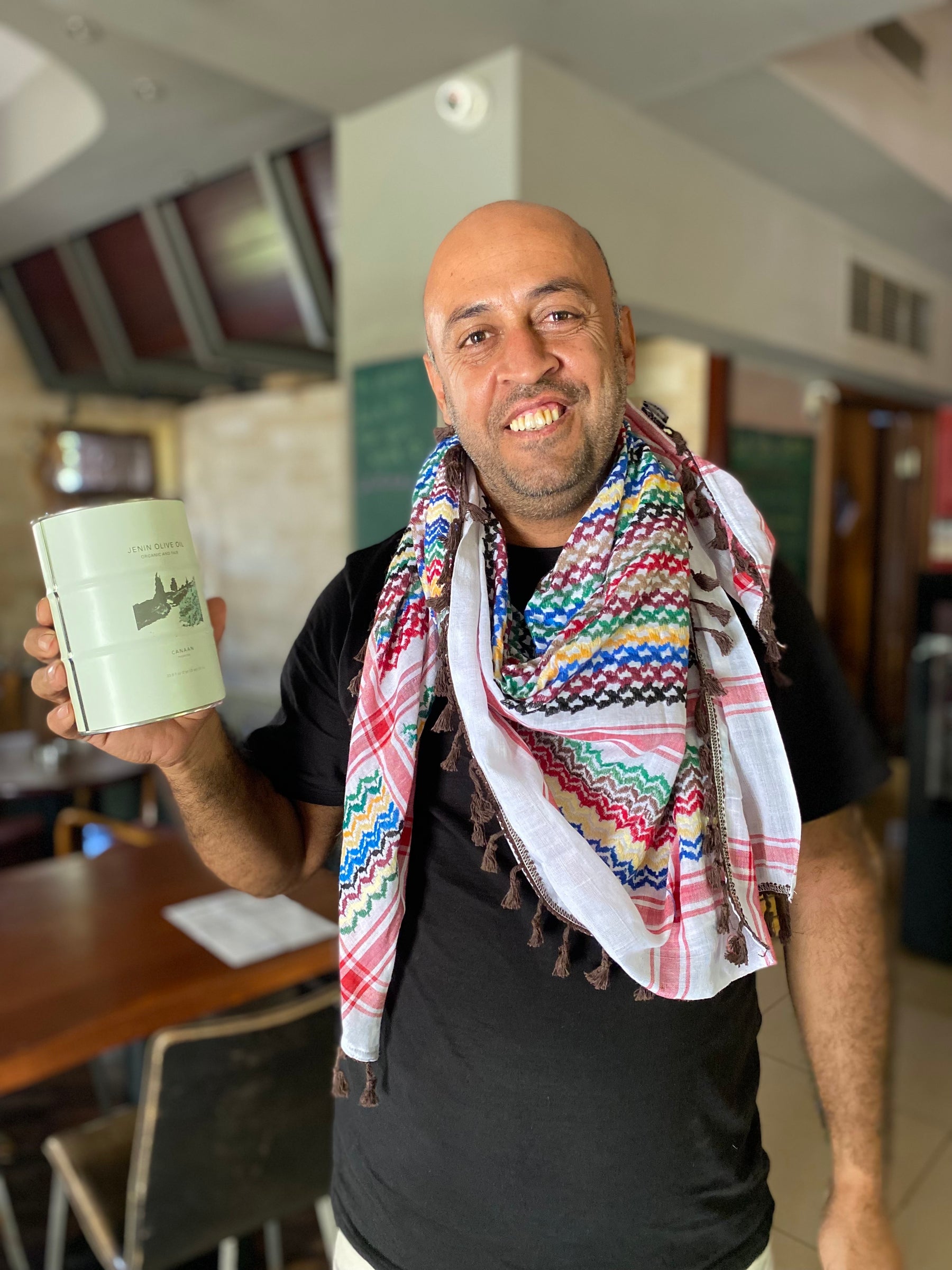 Traditional Palestinian Keffiyeh from Palestinian Factory in Yellow on White