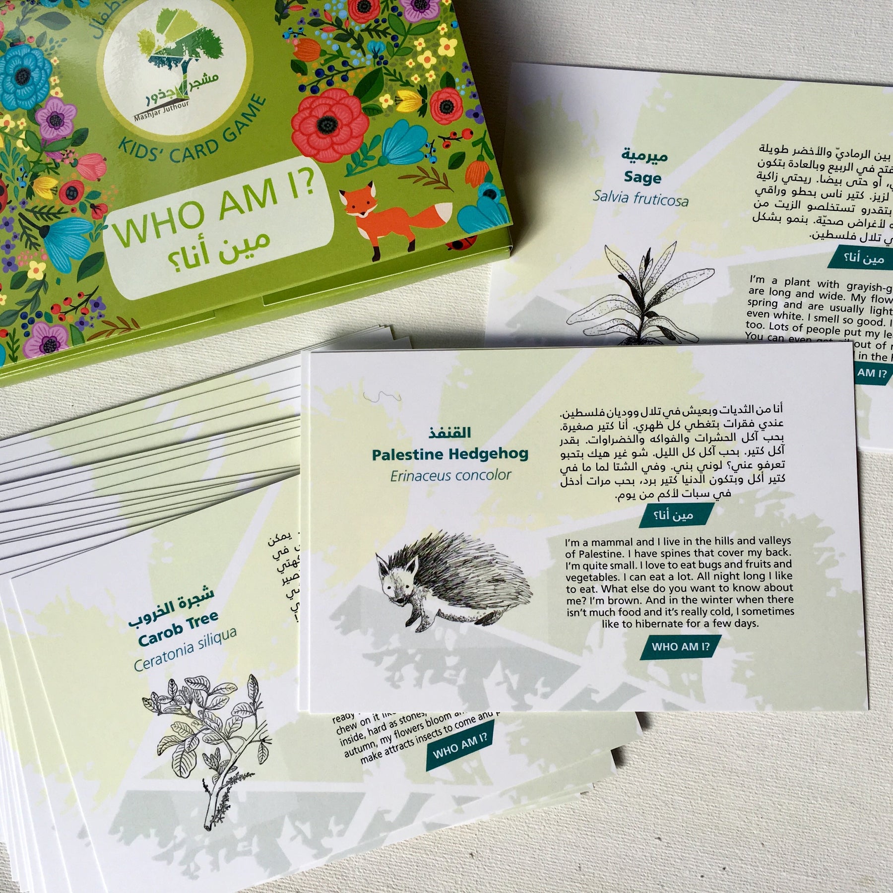 Educational games are a great way to learn. This Guessing Cards Game teaches kids about Palestine's wildlife. An original game created by Mashjar Juthour, Arboretum in Palestine, children learn about different elements of Palestine's natural heritage with names of each element in Arabic, English and Latin and lots of information.