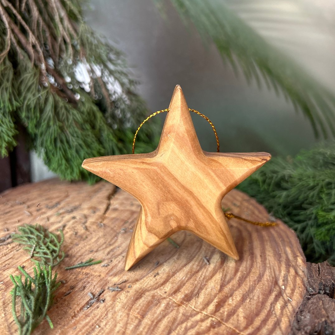 Christmas Star Carved from Olive Wood - Ornaments | Hand Carved from Bethlehem
