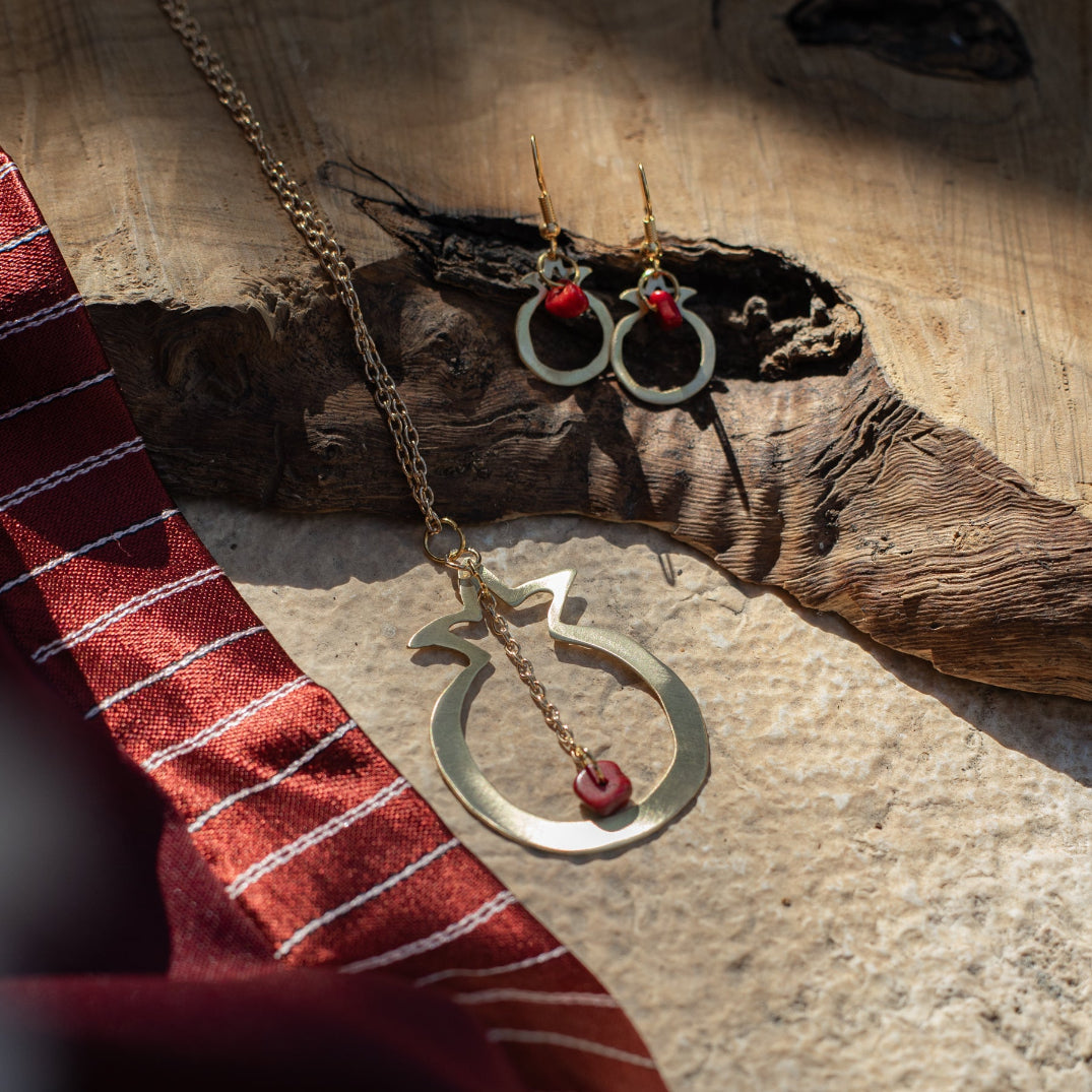 Brass Pomegranate Necklace with Earrings Set | Handmade Jewelry from Palestine
