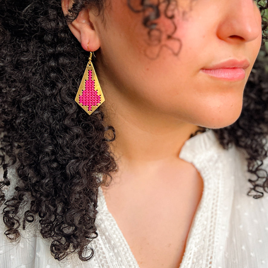 Jamilla Palestinian Tatreez on Brass Earrings | From Palestinian Women Artisans