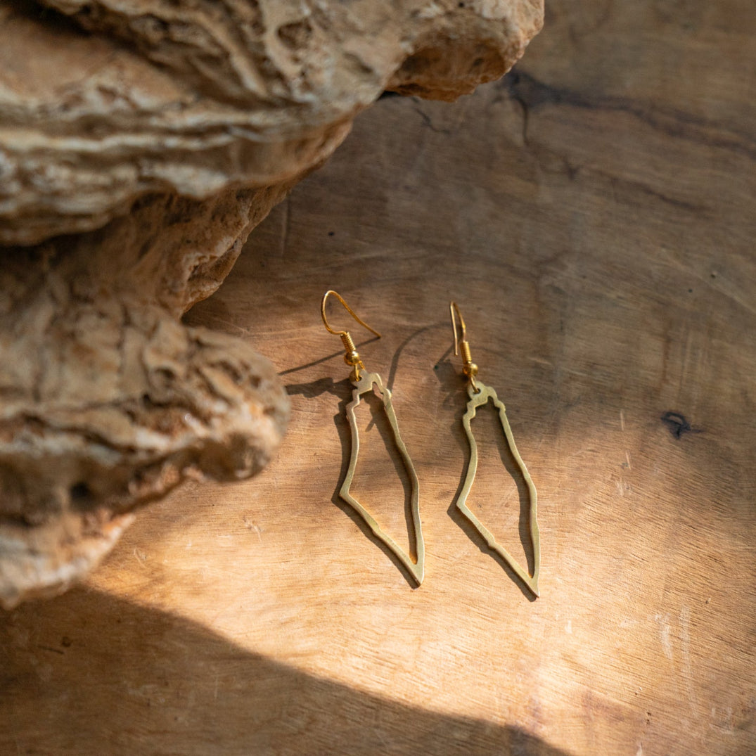 Palestine Map Outline Earrings in Brass | Handmade Jewelry from Palestine