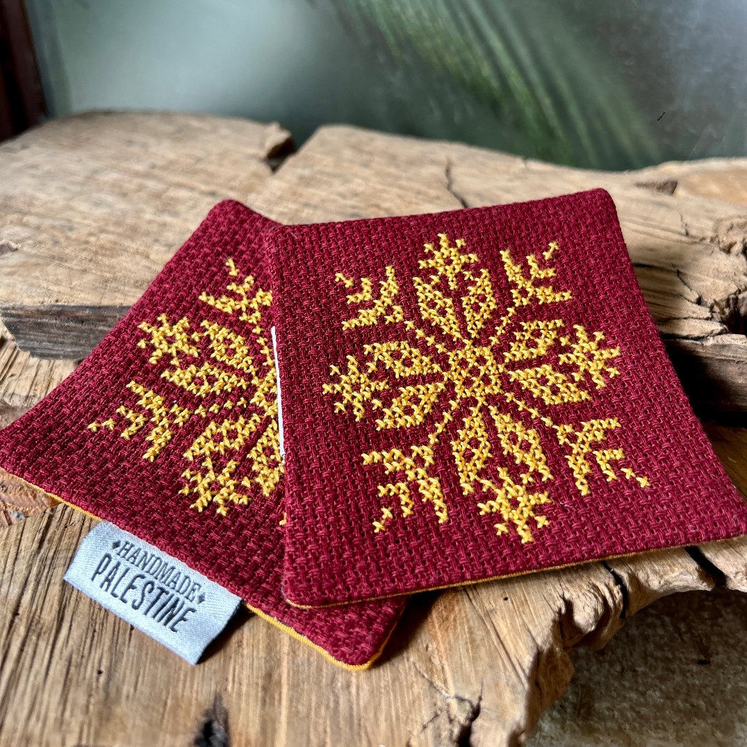 Hand Crafted Fabric Holiday Coasters with Tatreez from Palestine | Set of 4