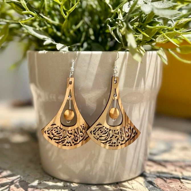 Arabic Calligraphy on Olive Wood Dangling Earrings | Handmade from Palestine