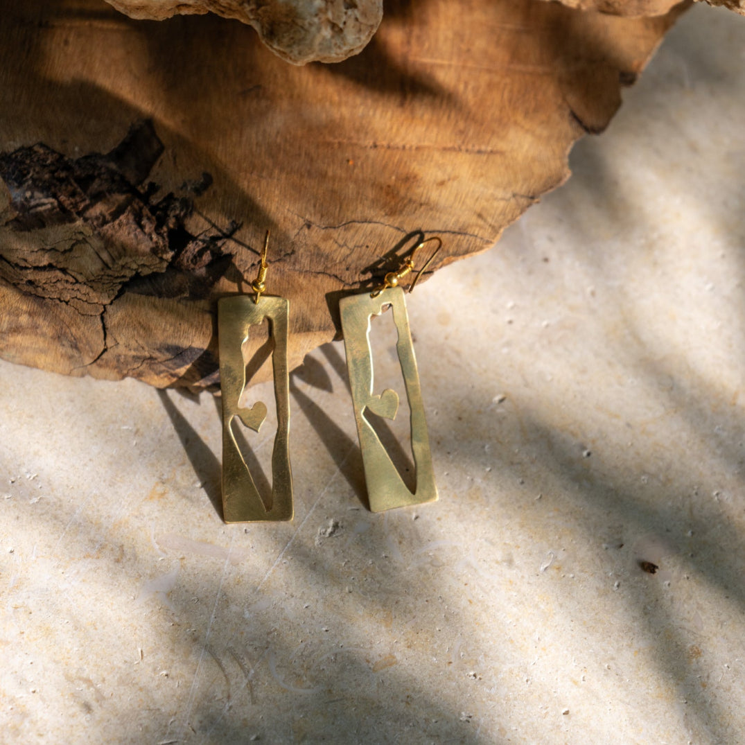 I Heart Palestine Map Shaped Brass Earrings | Handmade Jewelry from Palestine