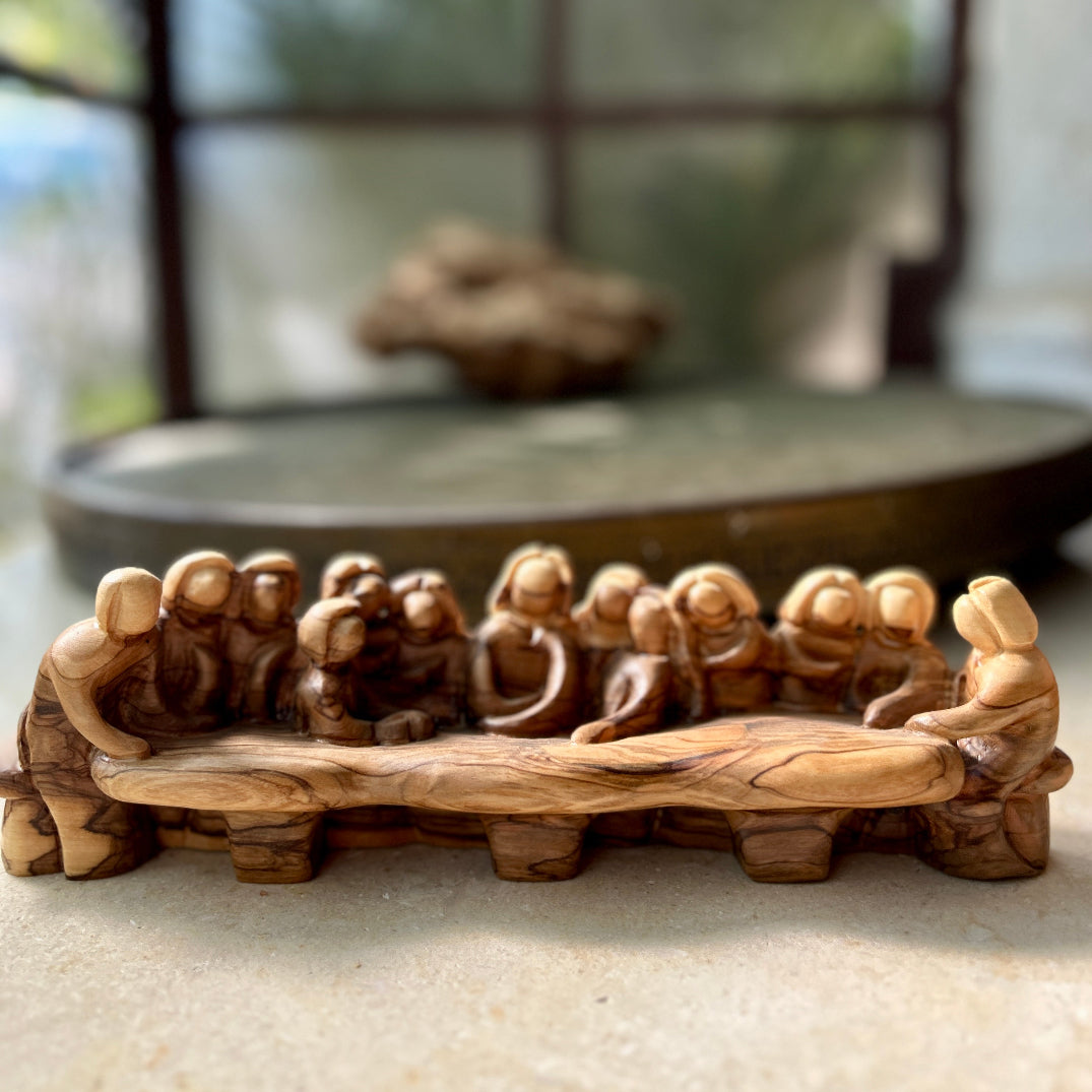 Last Supper Hand Carved Olive Wood Figurines | Single Piece of Wood