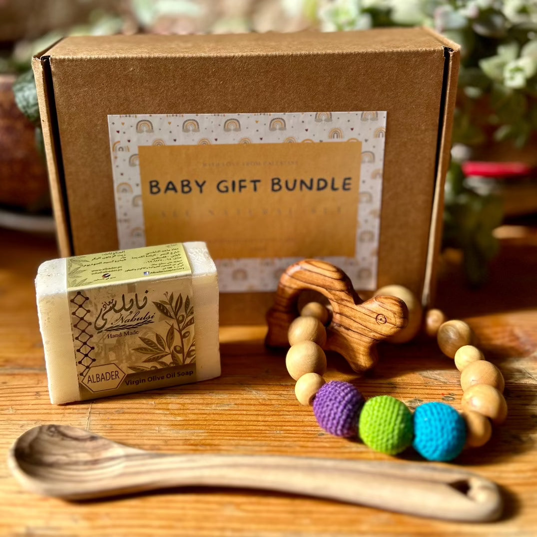 If you are looking for a lovely gift bundle for a baby shower or a new mama gift, we have the perfect curated set for you of handmade crafts from Palestine.