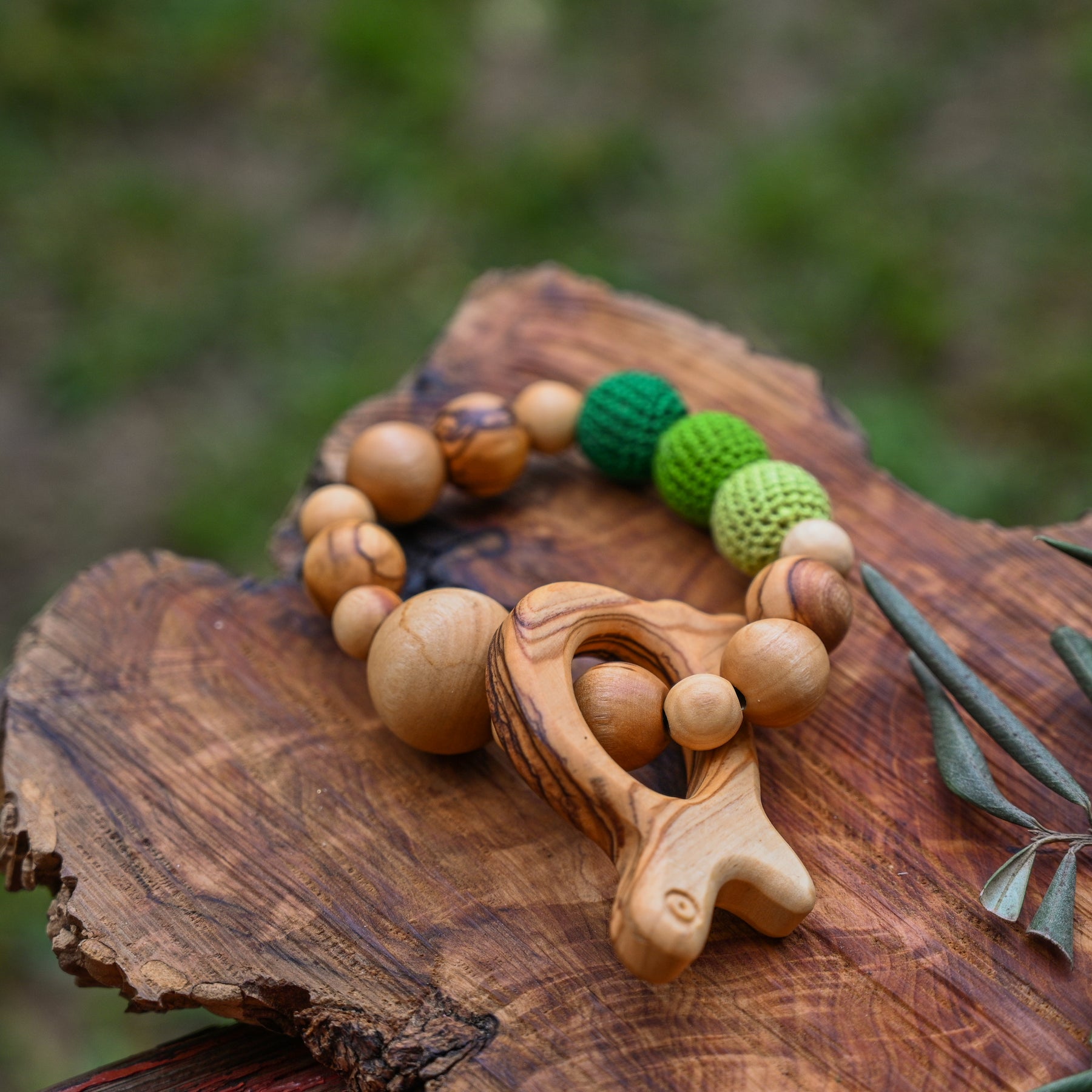 Little Olea creates beautifully hand-crafted pieces for teething baby, mom and toddlers from organic, untreated olive wood in Palestine.