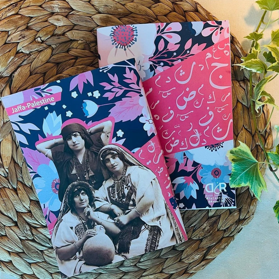 This A5 notebook, designed by Rand Dabboor, features historic women from Jaffa, capturing the spirit of Palestinian heritage.  Printed in Palestine, it's a beautifully crafted piece that combines cultural history with everyday functionality.