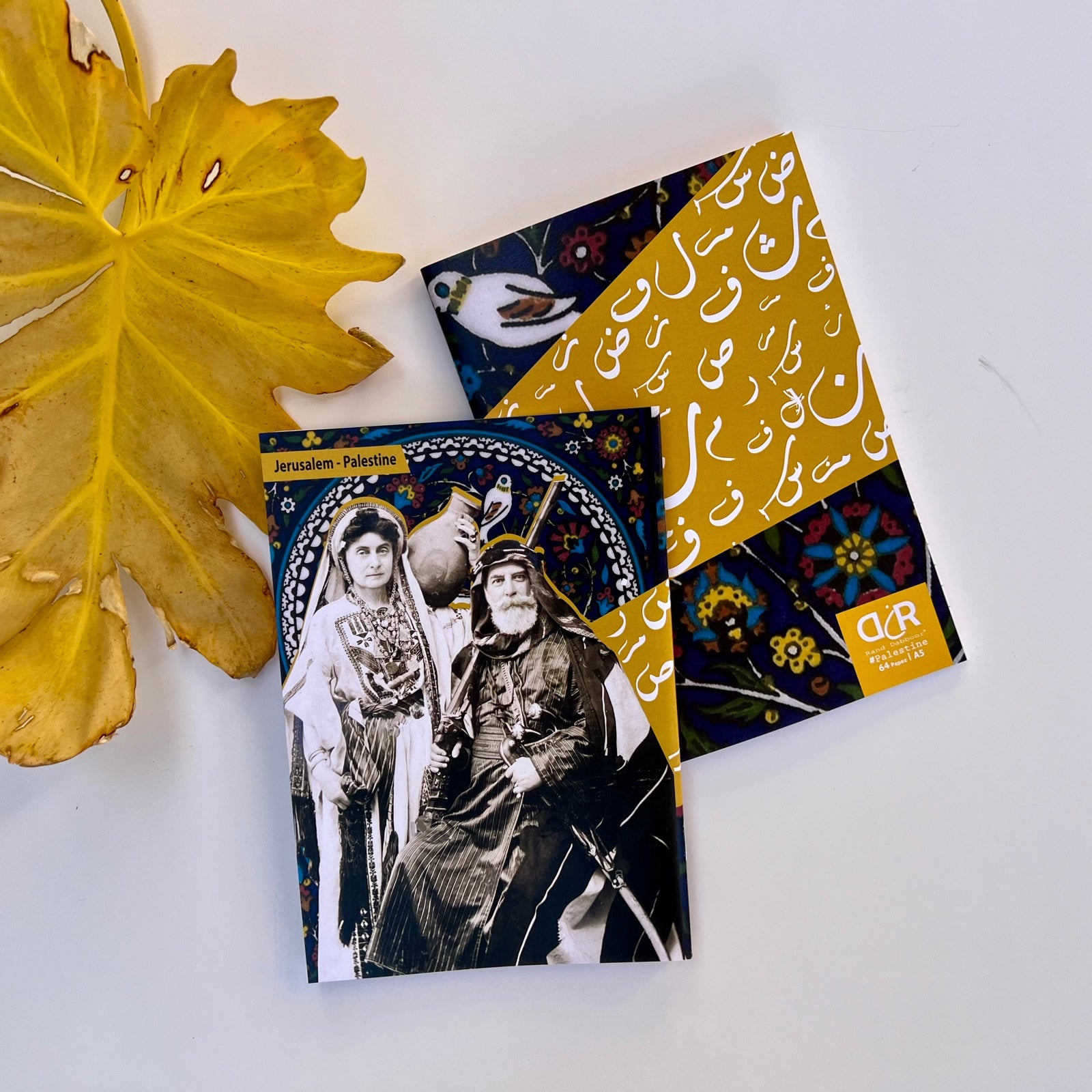 This A5 notebook, designed by Rand Dabboor, features a historic family from Jerusalem, beautifully capturing the essence of Palestinian heritage.  Printed in Palestine, it offers both functionality and a meaningful connection to cultural roots, making it a perfect keepsake or gift.