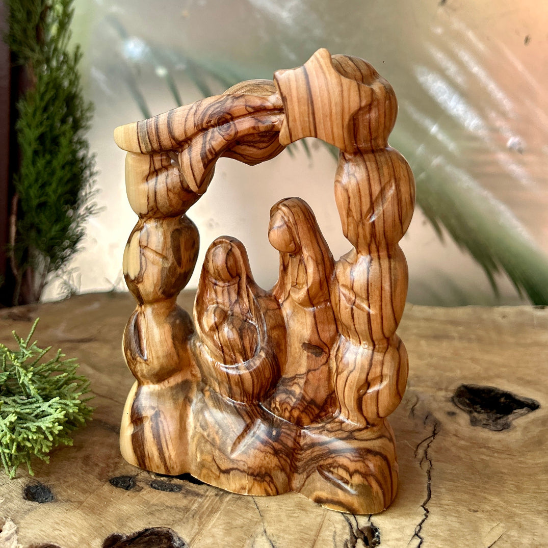 Holy Family Nativity Sculpture | Single Piece of Olive Wood | Hand Carved from Bethlehem