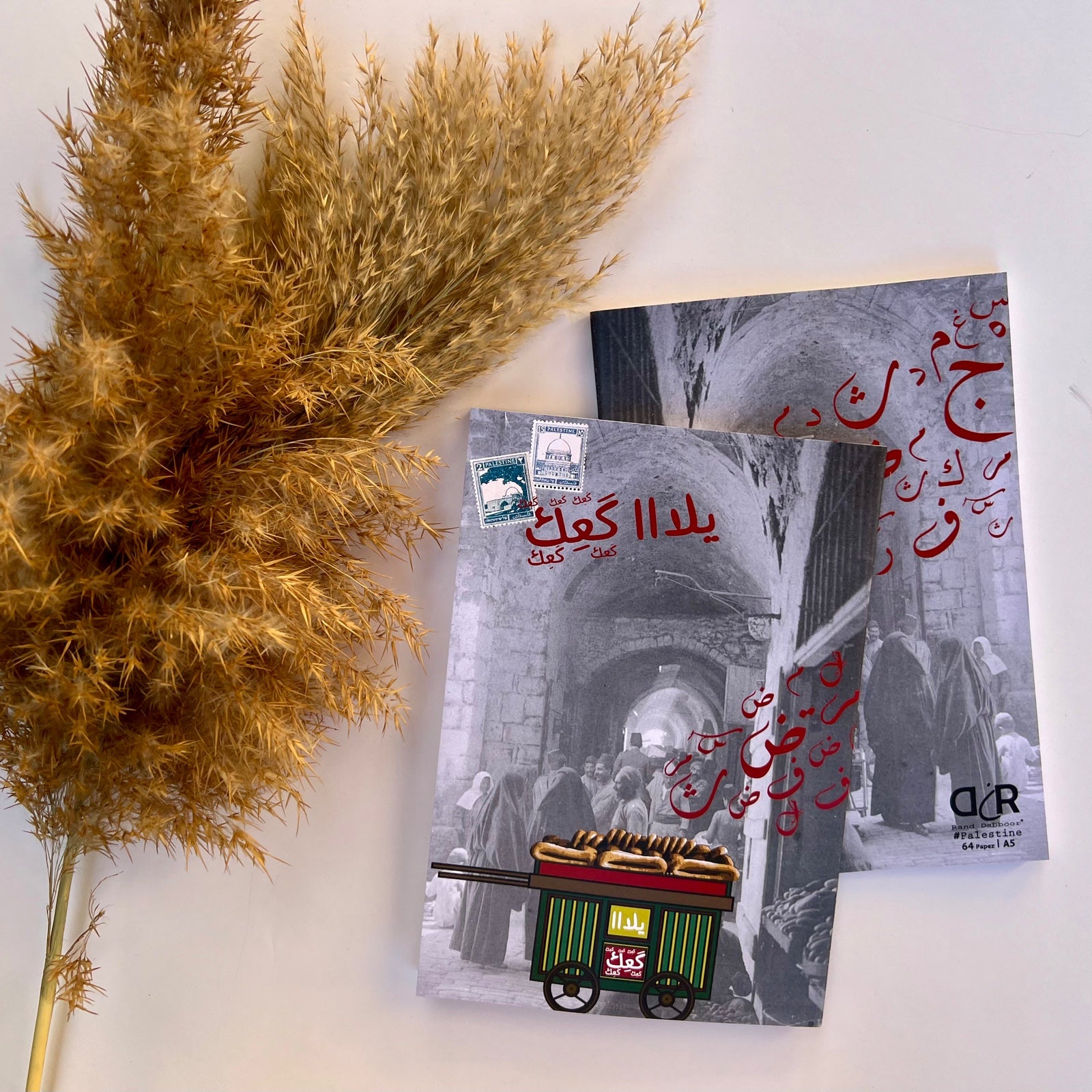 This A5 notebook, designed by Rand Dabboor, features an iconic depiction of a Ka'ak vendor from the Old City of Jerusalem, celebrating a beloved aspect of Palestinian culture. Printed in Palestine, it's perfect for daily use or as a unique gift that connects you to the vibrant history of Jerusalem.