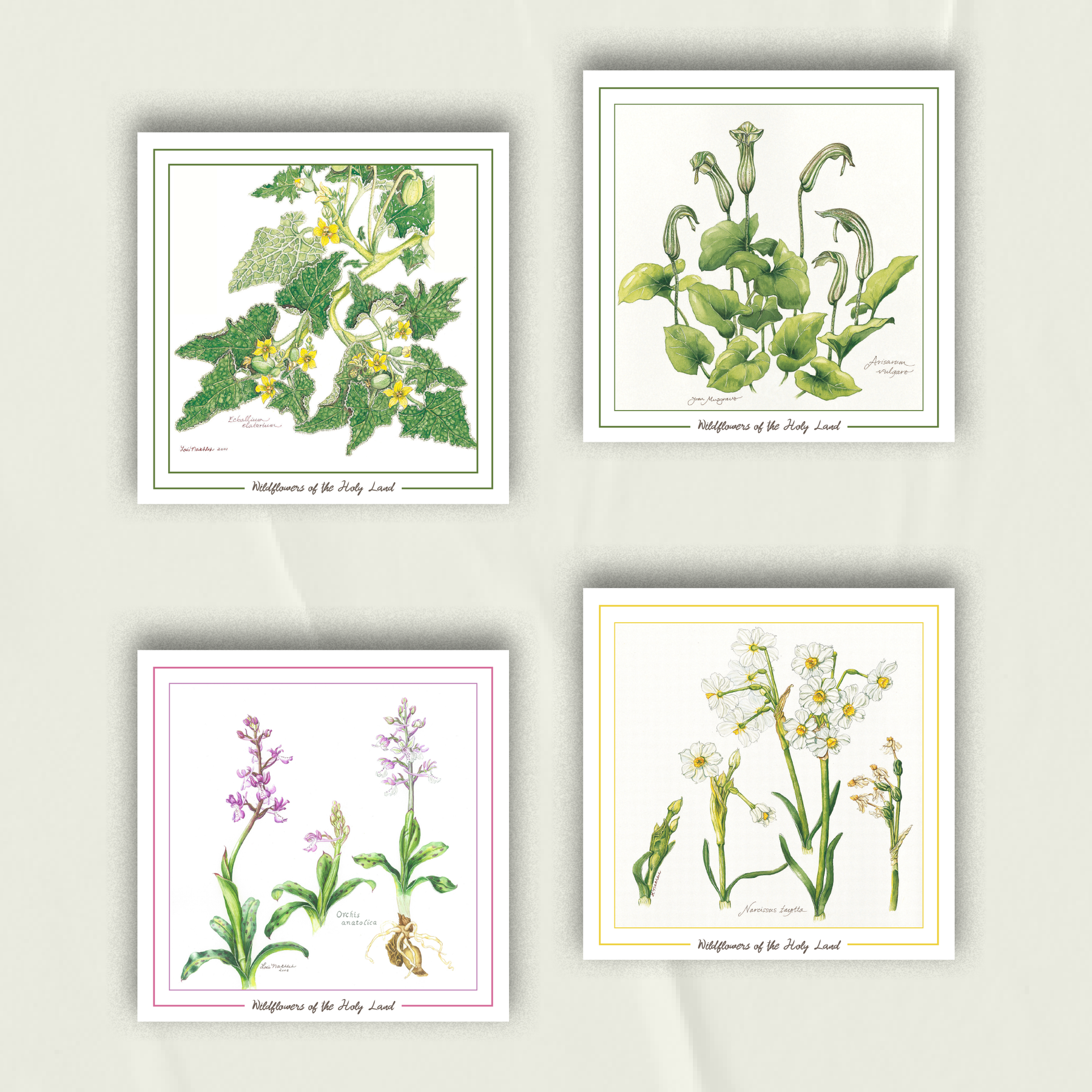 Palestinian Wildflowers Notecards | Set of 4 Greeting Cards in Greens