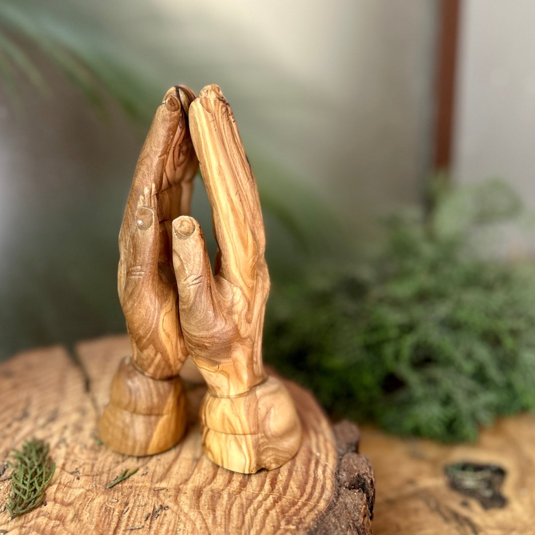 Prayer Hands Figurine in Natural Olive Wood | Hand Carved from Bethlehem