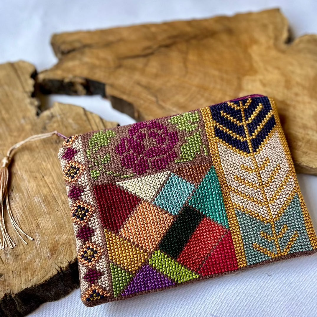 Palestinian Embroidered Pouch | Handcrafted Tatreez Bag in Rose Mosaic