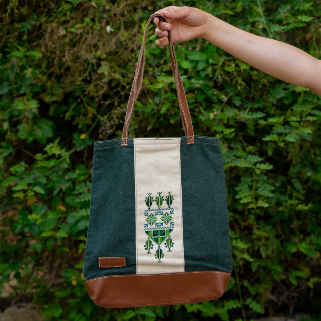 Tote with Leather Handles | Handmade Palestine Tatreez
