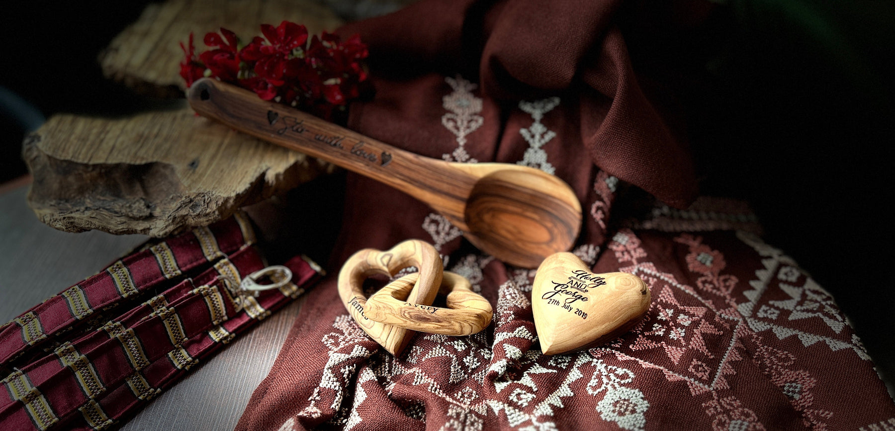 Personalized Linked Hearts in Olive Wood | Unique Wedding Favors from Palestine
