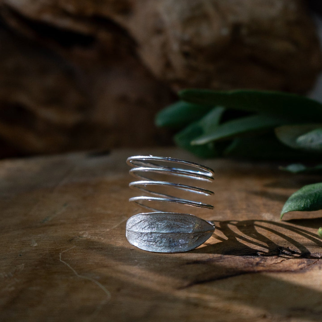 Olive Leaf Sterling Silver Ring - Funky Design on a Skinny Spiral Sale price€69,95