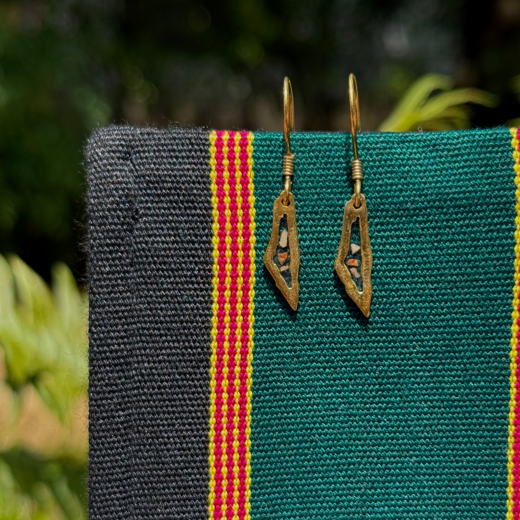 These stunning earrings are shaped in the map of Palestine and feature tiny pieces of stones from Palestinian cities held inside with clear or colored resin.