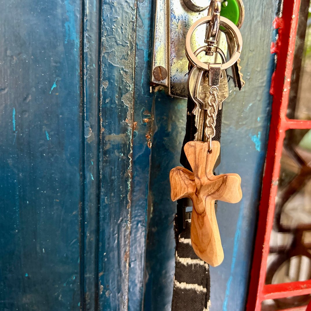 Olive Wood Cross Keychain | Hand Carved from Bethlehem