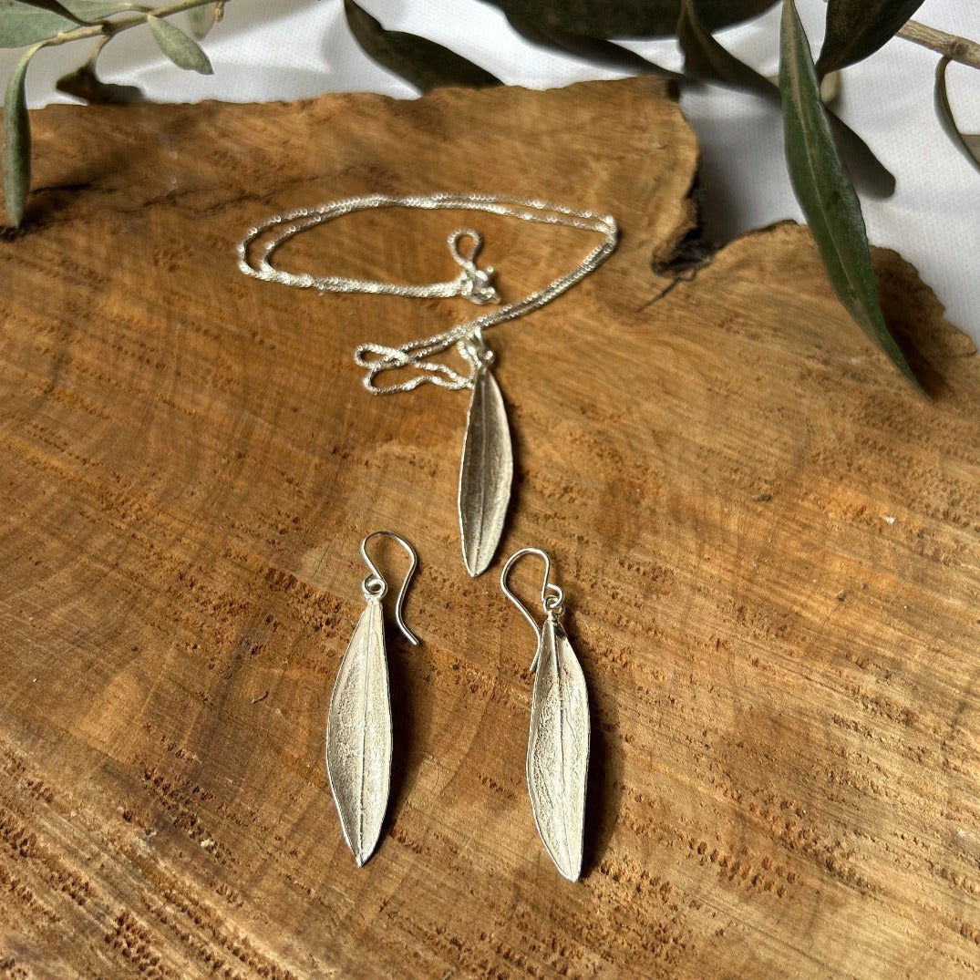 Palestinian Olive Leaf Jewelry Gift Set: Necklace & Dangling Earring Bundle