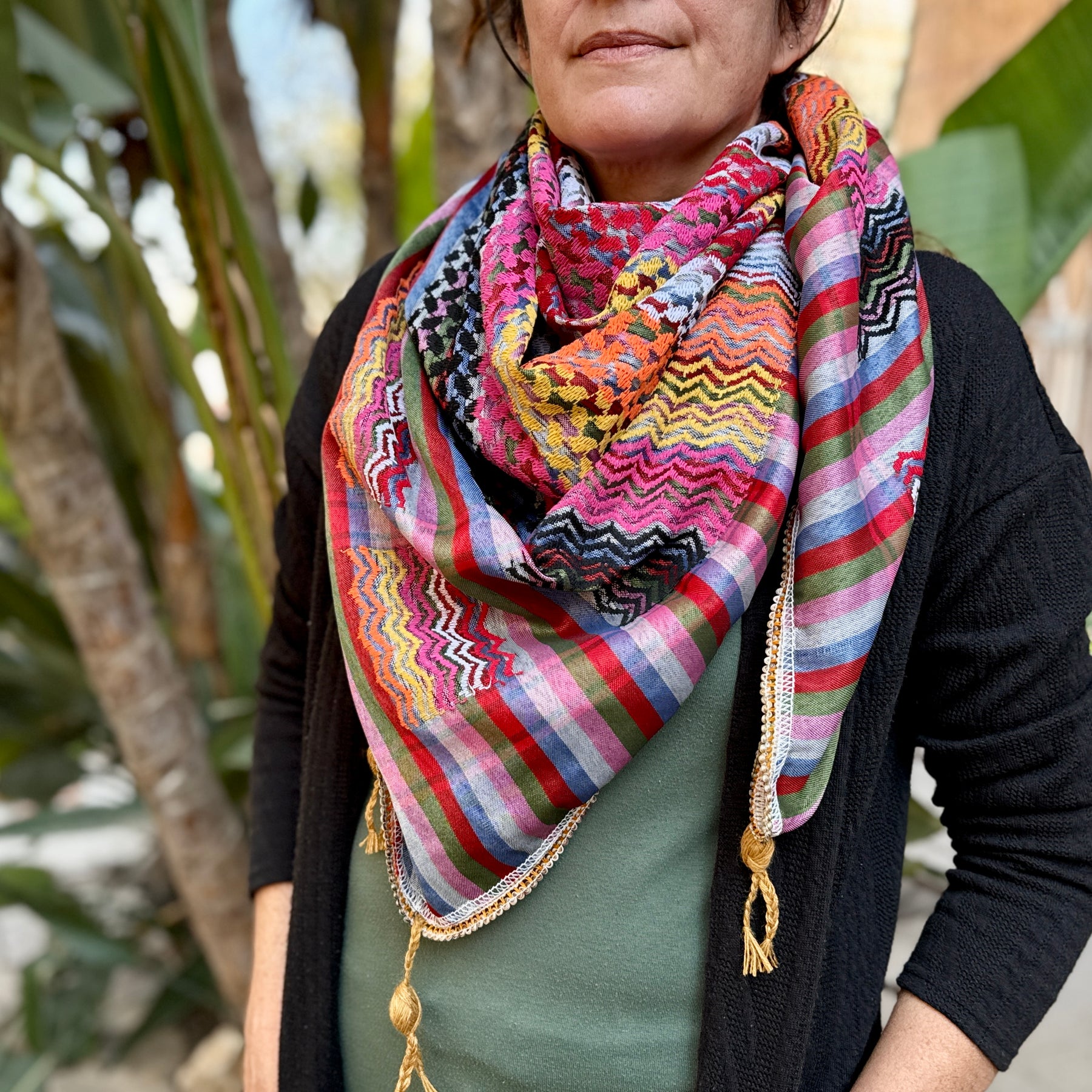 Colorful Palestinian Made Keffiyeh: Original Palestinian Hatta