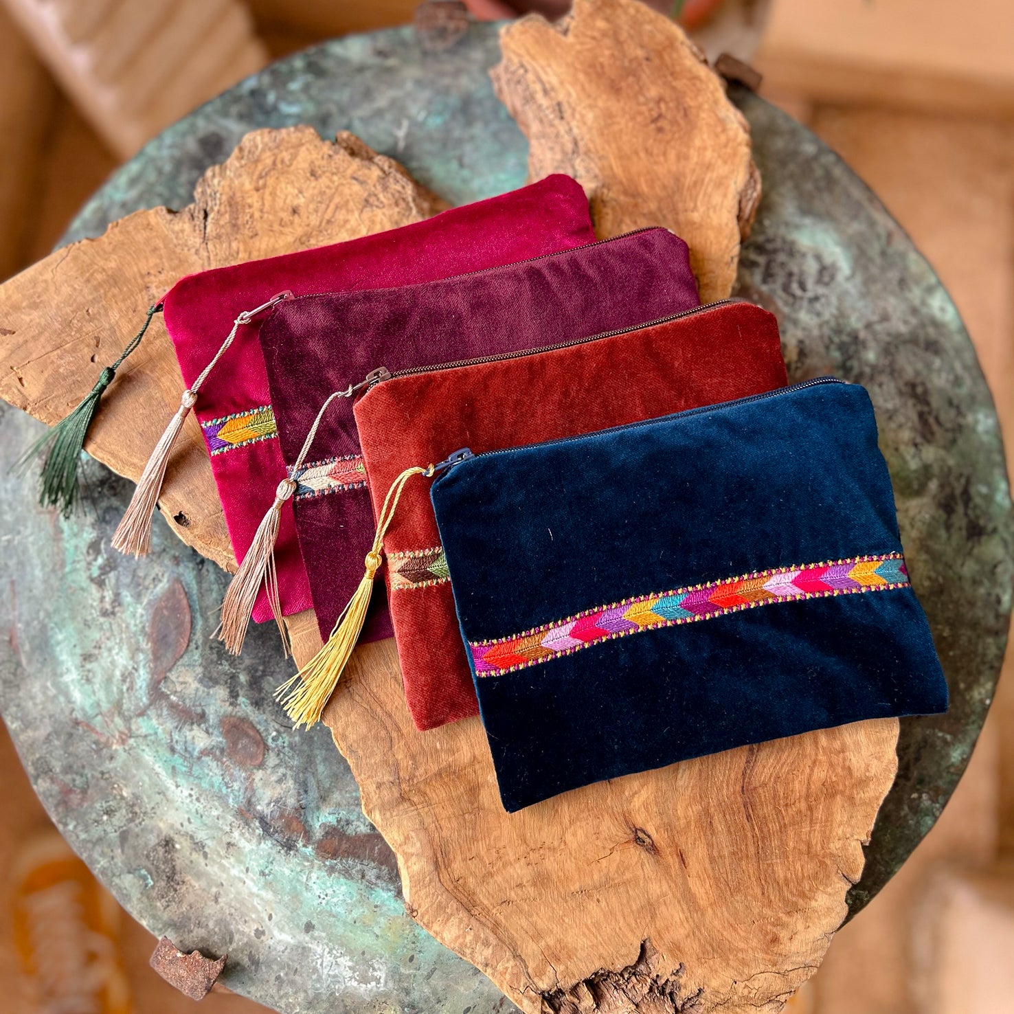 Hand Crafted Palestinian Embroidered Pouch | Tatreez Bag in Velvet with Traditional Sabayel