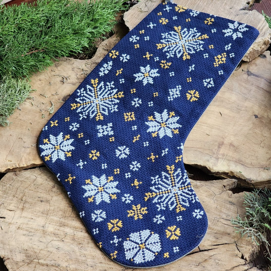 Christmas Stocking Hand Stitched with Snowflakes with Palestinian Tatreez | Holiday from Palestine